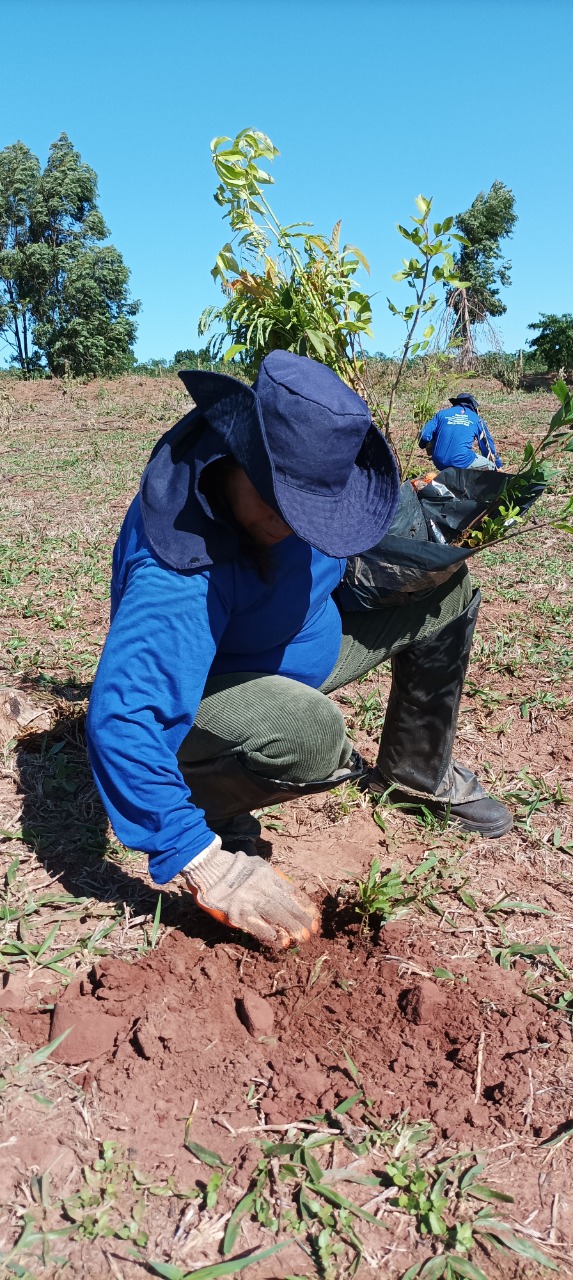 Ação de restauração ecológica com espécies nativas, Implantação de SAFs, enriquecimento de áreas com espécies nativas, erradicação de ervas invasoras, totalizando 36,09 hectares